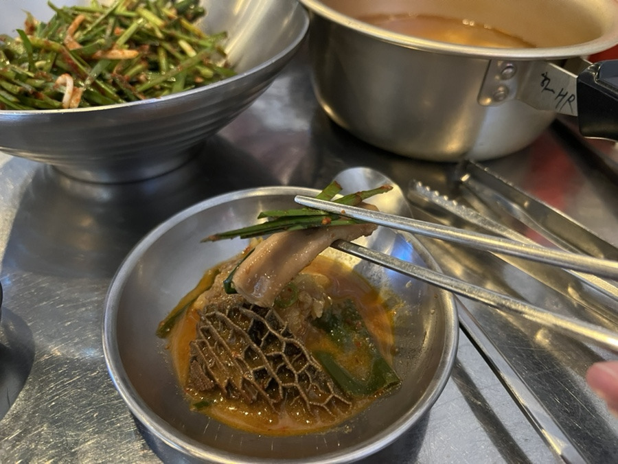 곱창전골의 매콤~한 국물에